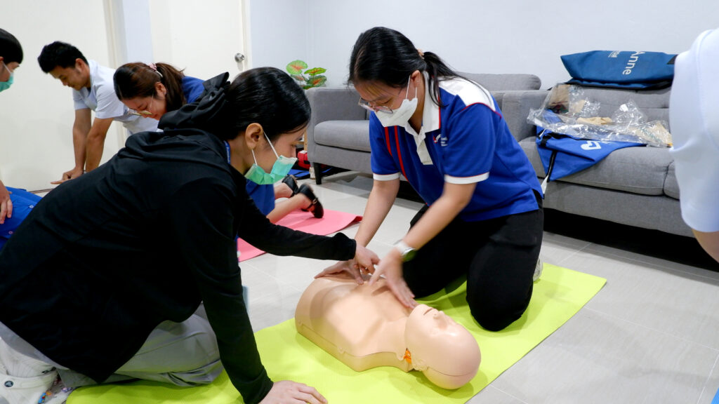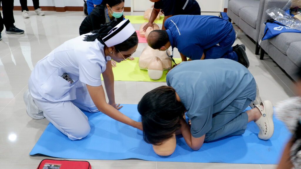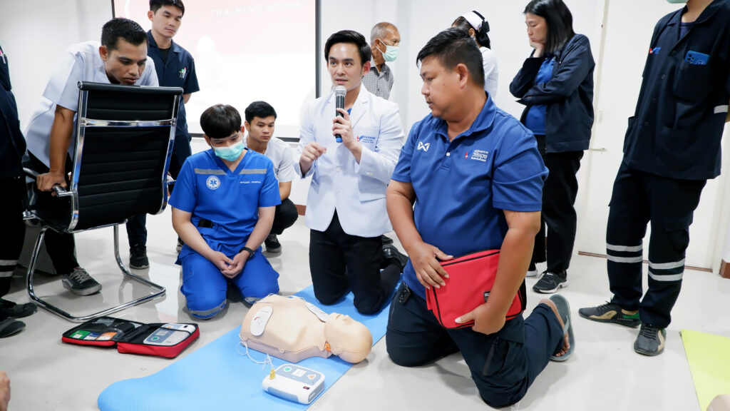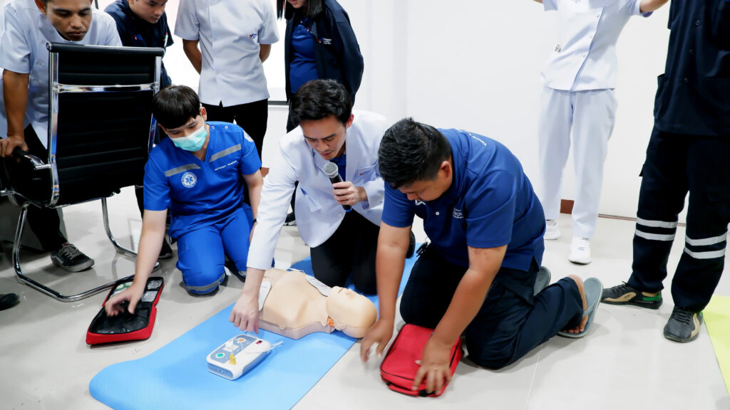 การอบรมได้รับเกียรติจาก นพ.ฉัตรชัย มีแดนไผ่ พร้อมด้วยทีมเจ้าหน้าที่นักปฏิบัติการฉุกเฉินกู้ชีพของโรงพยาบาลฯ ร่วมเป็นวิทยากรผู้ทรงคุณวุฒิ ซึ่งได้ถ่ายทอดความรู้และทักษะที่จำเป็นอย่างครอบคลุม ทั้งการทำ CPR ที่ถูกต้องตามหลักมาตรฐาน การประเมินสถานการณ์ผู้บาดเจ็บเบื้องต้น และเทคนิคการปฐมพยาบาลเบื้องต้นที่สามารถนำไปใช้ได้จริงในสถานการณ์ฉุกเฉิน