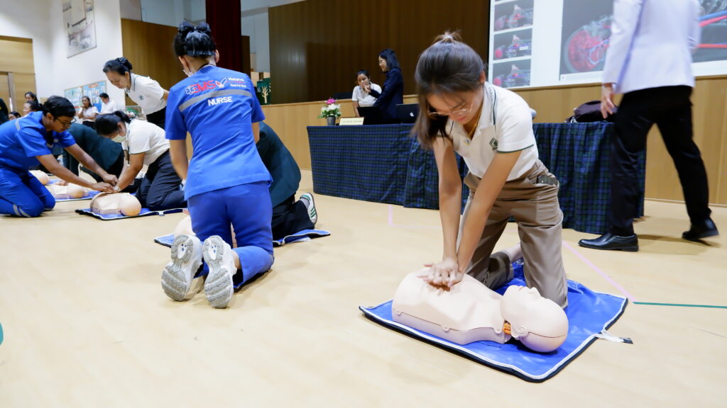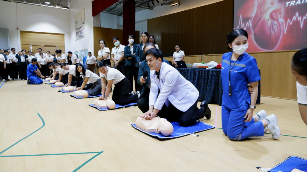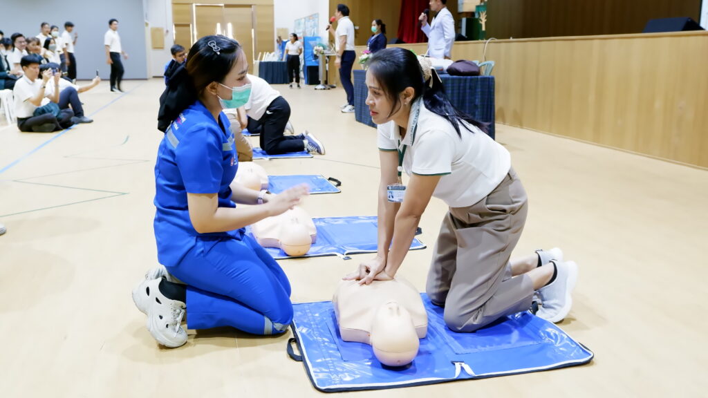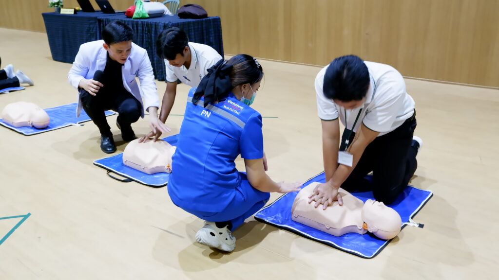โดยได้รับเกียรติจาก นพ.ฉัตรชัย มีแดนไผ่ (อว.เวชศาสตร์ป้องกัน เวชศาสตร์วิถีชีวิต) โรงพยาบาลวิชัยเวชแยกไฟฉาย กภ.อัญชลี สุโภภาค นักกายภาพบำบัด ร่วมกับทีมพยาบาลวิชาชีพ ให้เกียรติมาเป็นวิทยากรในครั้งนี้ ซึ่งได้ถ่ายทอดความรู้และทักษะที่จำเป็นอย่างครอบคลุม ทั้งการทำ CPR ที่ถูกต้องตามหลักมาตรฐาน การประเมินสถานการณ์ผู้บาดเจ็บเบื้องต้น และเทคนิคการปฐมพยาบาลเบื้องต้นที่สามารถนำไปใช้ได้จริงในสถานการณ์ฉุกเฉินที่อาจจะเกิดขึ้นในอนาคต