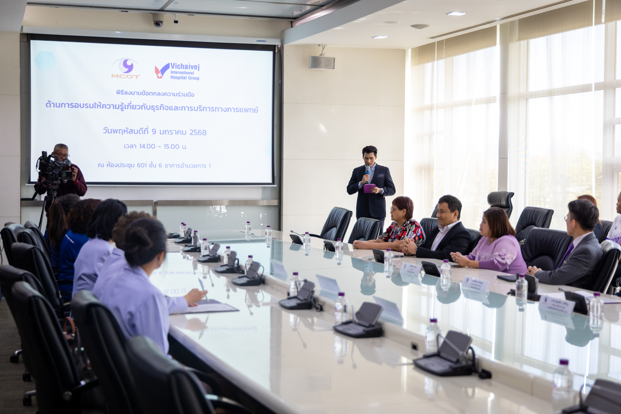 กรุงเทพฯ – 9 มกราคม 2568 กลุ่มโรงพยาบาลวิชัยเวช ผู้นำด้านการให้บริการทางการแพทย์ ร่วมมือกับ บมจ. อสมท ผู้เชี่ยวชาญด้านการสื่อสาร ลงนามบันทึกข้อตกลงความร่วมมือ (MOU) ด้านการอบรมและให้ความรู้เกี่ยวกับธุรกิจและการบริการทางการแพทย์ มุ่งพัฒนาศักยภาพบุคลากร เสริมสร้างความแข็งแกร่ง และยกระดับมาตรฐานธุรกิจโรงพยาบาล พร้อมกันนี้ กลุ่มโรงพยาบาลวิชัยเวช ยังนำความเชี่ยวชาญและเทคโนโลยีทางการแพทย์ มาร่วมดูแลสุขภาพ และให้ความรู้ด้านสุขภาพแบบครบวงจร แก่บุคลากรของ อสมท